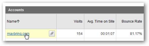 میں اپنی سائٹ کے نام پر کلک کریں اکاؤنٹس فہرست