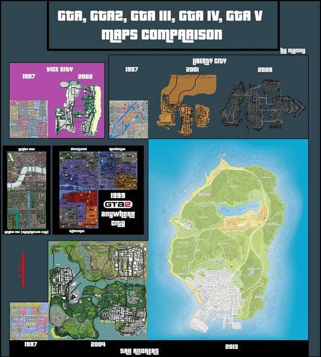 پیچیدگی میں بڑھتے ہوئے جدید کھیلوں کے گرافکس اور آڈیو کے علاوہ ، کھیل خود بھی بڑے پیمانے پر ہوتے جارہے ہیں۔ کے لئے اس موازنہ چارٹ پر ایک نظر ڈالیں گرینڈ چوری آٹو سیریز جی ٹی اے III 2001 سے اب تک اس کی رہائی کے وقت بنائے گئے سب سے بڑے فری رومنگ کھیلوں میں سے ایک سمجھا جاتا تھا ، لیکن ڈویلپرز نے اس کے نقشے کے سائز کو تین سال بعد ہی تین گنا بڑھا دیا جی ٹی اے: سان اینڈریاس . سیریز کا تازہ ترین گیم ، جی ٹی اے وی ، کے پاس دس گنا سے زیادہ سائز کا نقشہ ہے ، جس میں بہت ساری قسم کے علاقے اور ماحول شامل ہیں۔
