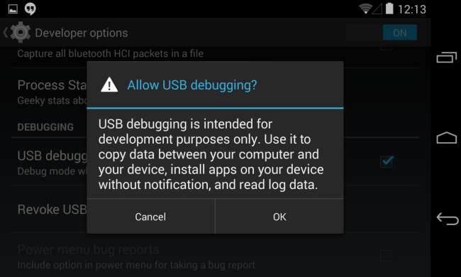 May mắn thay, Android hiện cung cấp một cảnh báo, ngay cả khi bạn đã bật gỡ lỗi USB. Bạn phải xác nhận thiết bị trước khi nó có thể đưa ra lệnh gỡ lỗi của Hoa Kỳ. Nếu bạn cắm điện thoại của mình vào máy tính hoặc cổng sạc USB và thấy lời nhắc này khi bạn không mong đợi, đừng chấp nhận. Trên thực tế, bạn nên tắt tính năng gỡ lỗi USB trừ khi bạn đang sử dụng nó cho việc gì đó.