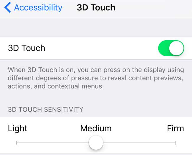 Nếu muốn điều chỉnh cài đặt của 3D Touch, bạn có thể mở ứng dụng Cài đặt và điều hướng đến Chung> Trợ năng> 3D Touch. Từ đây, bạn có thể tắt hoặc bật 3D Touch và kiểm soát độ nhạy của nó.