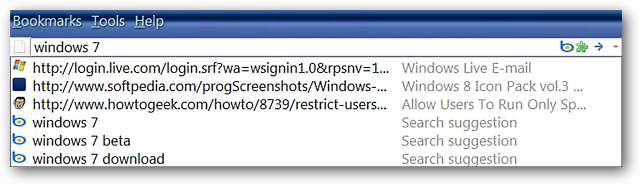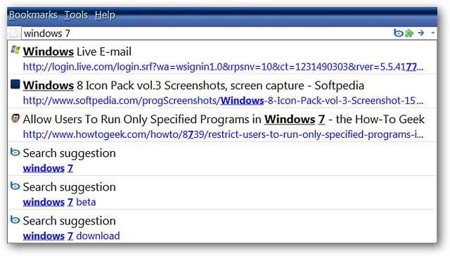 Đối với ví dụ đầu tiên của chúng tôi, bạn có thể thấy kết quả khi chúng tôi tiến hành tìm kiếm nhanh trên “Windows 7” (sử dụng dịch vụ đầu tiên trong ba dịch vụ được hiển thị từ Bing).