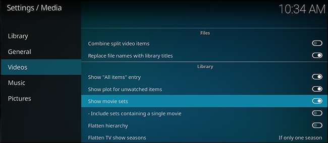 Với một chỉnh sửa cài đặt nhanh, các bộ sẽ hiển thị theo mặc định khi bạn duyệt qua thư viện của mình. Đi tới Cài đặt> Phương tiện, sau đó đến tab “Video”. Đảm bảo rằng tùy chọn “Hiển thị các bộ phim” được bật.