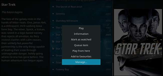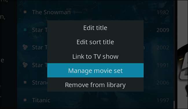 Chọn phim bạn muốn thêm vào một bộ tùy chỉnh (hoặc chuyển sang một bộ khác), sau đó nhấn “c” trên bàn phím. Nhấp vào “Quản lý” trên menu bật lên xuất hiện.
