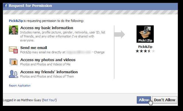 Pick & Zip sẽ cần quyền truy cập vào thông tin và hình ảnh hồ sơ của bạn, đồng thời yêu cầu địa chỉ email của bạn. Nhấp chuột Cho phép để Pick & Zip lấy thông tin này từ hồ sơ của bạn.