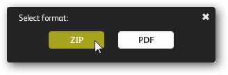 Chọn xem bạn muốn tải ảnh xuống dưới dạng tệp zip hay PDF.