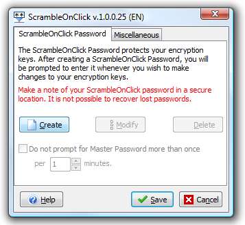 Khi lần đầu tiên thiết lập Scramble On Click, bạn sẽ cần thiết lập mật khẩu để bảo vệ các khóa mã hóa.