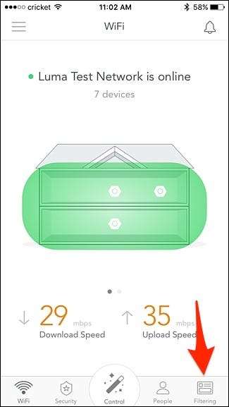 Để truy cập kiểm soát của phụ huynh của Luma, hãy mở ứng dụng và nhấn vào tab “Lọc” ở góc dưới bên phải của màn hình.