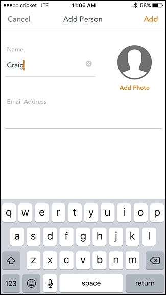 Nhập tên của họ. Bạn cũng có thể thêm ảnh và địa chỉ email, nhưng chúng không bắt buộc. Khi hoàn tất, nhấn “Thêm” ở góc trên bên phải.