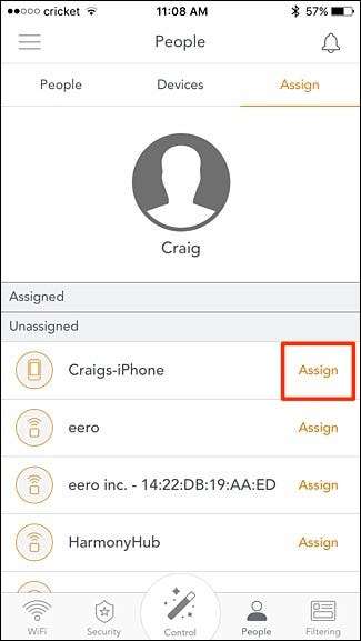 Tìm một thiết bị từ danh sách ở dưới cùng của người bạn đã tạo hồ sơ và nhấn vào “Chỉ định”.