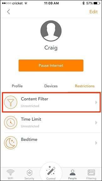 Nếu bạn chỉ muốn những đứa trẻ trong nhà chịu sự kiểm soát của phụ huynh Luma, bạn có thể chọn và chọn thiết bị nào trên mạng sẽ bị hạn chế. Thật không may, bạn không thể chỉ nhấn vào một thiết bị trên mạng và chọn cấp độ lọc nội dung của nó, mà bạn phải thêm hồ sơ của những người trong gia đình mình và gán thiết bị cho những hồ sơ đó. Vì vậy, nếu Johnny có điện thoại thông minh và máy tính xách tay, bạn có thể liên kết thiết bị đó với hồ sơ Luma của anh ấy.