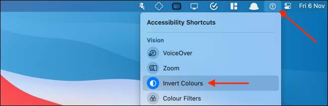 Nếu bạn đang chạy macos lớn sur. Và mới hơn, bạn có thể truy cập các tính năng này ngay từ thanh menu hoặc sử dụng Trung tâm điều khiển. Menu phím tắt khả năng truy cập mang lại nhiều tính năng trợ năng được sử dụng thường xuyên, như Chế độ thang độ xám. , đi trước để bạn không cần phải truy cập tùy chọn hệ thống mỗi khi bạn muốn bật hoặc tắt tính năng.