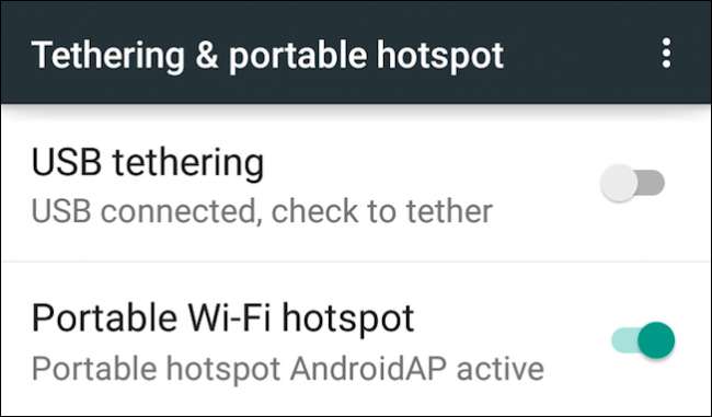 Bây giờ, bạn có một nút cho phép bạn bật / tắt điểm phát sóng di động của mình, ngoài ra nó còn cho bạn biết nó đang bật hay tắt, bạn có thể dễ dàng xác định điều này từ thanh thông báo.