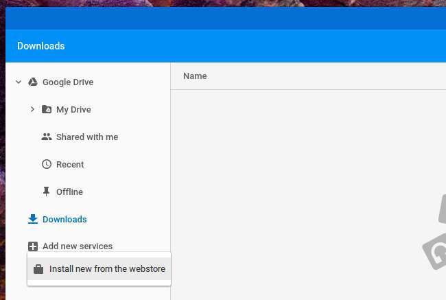 Google đã làm cho điều này rõ ràng hơn bây giờ với một liên kết nhanh trong ứng dụng Tệp. Nhấp vào “Thêm dịch vụ mới” trong thanh bên và chọn “Cài đặt mới từ cửa hàng trực tuyến” để truy cập trực tiếp vào Cửa hàng Chrome trực tuyến.
