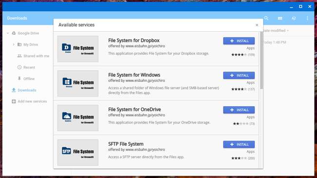 Bạn sẽ cần tìm các loại hệ thống tệp mới trong Cửa hàng Chrome trực tuyến. Đây là những ứng dụng Chrome sử dụng “ chrome.fileSystemProvider ”API để tích hợp với hệ điều hành, giống như Google Drive làm theo mặc định. Điều này đã được giới thiệu với Chrome OS 40.