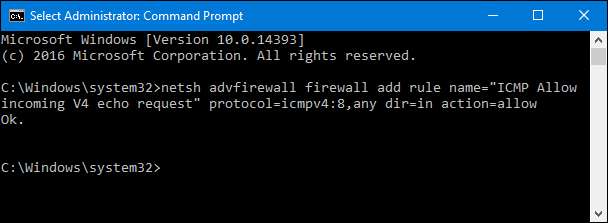 Tường lửa netsh advfirewall thêm quy tắc tên = "ICMP Cho phép yêu cầu tiếng vang V4 đến" protocol = icmpv4: 8, bất kỳ dir = in action = allow