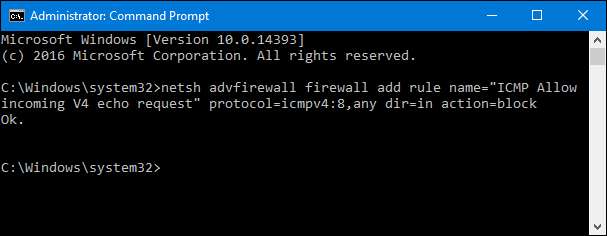 netsh advfirewall firewall thêm rule name = "ICMP Cho phép yêu cầu tiếng vọng V4 đến" protocol = icmpv4: 8, bất kỳ dir = in action = block