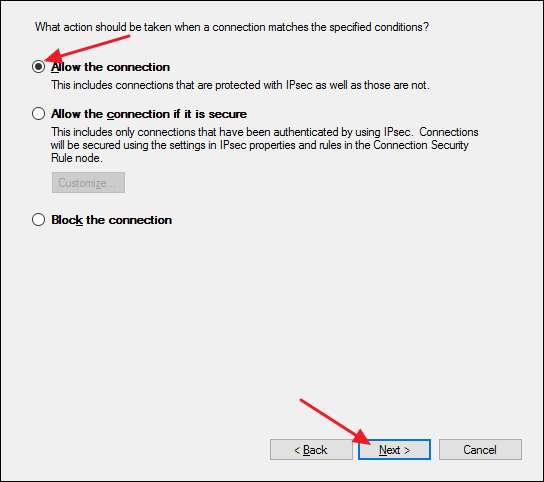 Trên trang tiếp theo, hãy đảm bảo rằng tùy chọn “Cho phép kết nối” được bật và sau đó nhấp vào “Tiếp theo”.