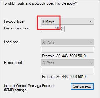 Thực hiện theo các bước tương tự mà chúng tôi vừa xem qua và đặt tất cả các tùy chọn giống hệt như chúng tôi đã làm cho quy tắc ICMPv4. Tuy nhiên, khi bạn truy cập trang cổng và giao thức, hãy chọn “ICMPv6” từ menu thả xuống thay vì “ICMPv4”. Điều đó — và tạo một tên khác cho quy tắc — là hai điều duy nhất thay đổi.
