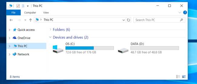Điều này có thể thuận tiện đối với một số người, nhưng nó thường không cần thiết. Windows 10 của “ Đặt lại PC này ”Tính năng sẽ đặt lại Windows về cài đặt mặc định mà không xóa dữ liệu cá nhân của bạn, ngay cả khi cả hai đều nằm trên cùng một phân vùng. Điều này chia không gian trên ổ cứng của bạn thành hai phần và bạn có thể lấp đầy một trong các phân vùng và không có dung lượng cho các chương trình trên phân vùng hệ thống hoặc các tệp dữ liệu trên phân vùng dữ liệu của bạn sau khi thực hiện.