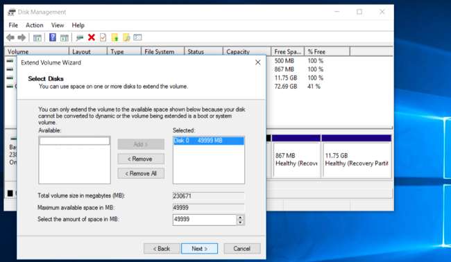 Lướt qua trình hướng dẫn và chấp nhận các tùy chọn mặc định để phóng to phân vùng lên mức tối đa của không gian có sẵn. Nó sẽ mở rộng thành không gian trống bị bỏ lại sau khi phân vùng liền kề bị xóa.