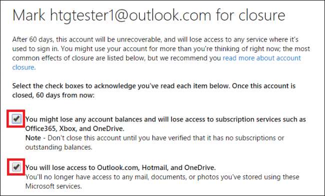 Nhập mã vào thanh xác minh và khi trang này được chuyển qua, Microsoft sẽ yêu cầu bạn nhấp vào nhiều để đảm bảo bạn hiểu 100% ý nghĩa của việc đóng tài khoản của mình.