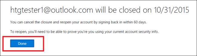 Tuy nhiên, trong trường hợp bạn không hoàn toàn, chắc chắn 100% rằng bạn thực sự muốn đóng tài khoản của mình, Microsoft sẽ giúp bạn giữ tài khoản mở thêm 60 ngày nữa; chỉ trong trường hợp bạn thu thập đủ can đảm để quay lại.