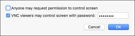 Nếu bạn nhấp vào nút “Chỉnh sửa”, bạn sẽ có thể đặt mật khẩu để người xem VNC có thể điều khiển màn hình, nếu không, họ sẽ chỉ có thể xem nội dung của nó.