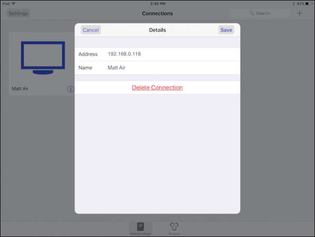 Ngoài ra còn có nút “Chỉnh sửa” ở góc trên bên trái của cài đặt kết nối. Chỉnh sửa kết nối của bạn cho phép bạn thay đổi địa chỉ, tên và xóa hoàn toàn.