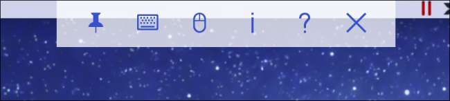 Bây giờ bạn đã đăng nhập vào máy Mac của mình, hãy cùng xem thanh điều khiển đó. Từ trái sang phải, bạn có thể ghim hoặc bỏ ghim tính năng này, hiển thị hoặc ẩn bàn phím và truy cập các điều khiển chuột.
