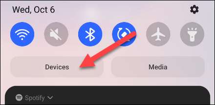 Để bắt đầu, hãy vuốt xuống từ trên cùng của màn hình để hiển thị cài đặt nhanh và nhấn nút "Thiết bị".