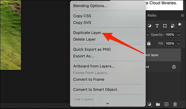 Chọn tài liệu mà bạn muốn sao chép một lớp bằng cách nhấp vào tab của nó gần trên cùng của cửa sổ Photoshop. Trong bảng "Lớp" trên thanh bên phải, nhấp chuột phải vào lớp bạn muốn sao chép và chọn "Lớp trùng lặp".