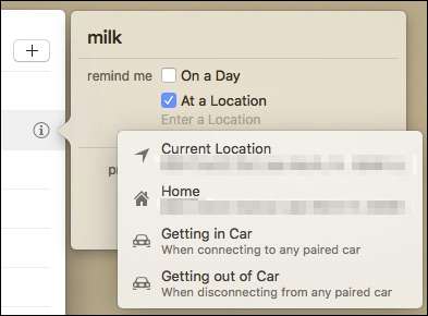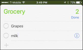 Trong ví dụ này, chúng ta sẽ tạo lời nhắc đi đến cửa hàng tạp hóa và lấy sữa vào lần sau khi chúng ta lên xe. Đầu tiên, chúng tôi chọn mục mà chúng tôi muốn chỉ định một hành động và nhấn vào biểu tượng “i”.