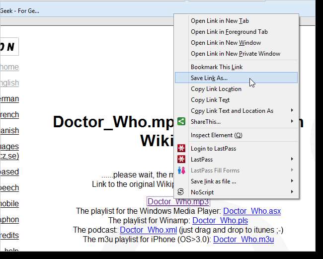 Để lưu tệp vào đĩa, nhấp chuột phải vào liên kết MP3 và chọn Lưu Liên kết Dưới dạng từ menu bật lên và sử dụng hộp thoại hiển thị để chọn vị trí cho tệp và lưu tệp.