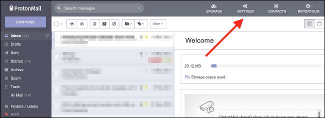 Để xóa tài khoản ProtonMail của bạn vĩnh viễn, trước tiên, hãy đăng nhập bằng tên người dùng và mật khẩu của bạn, sau đó nhấp vào tab Cài đặt ở đầu màn hình.