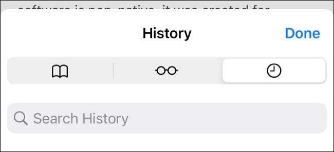 Một cửa sổ bật lên sẽ xuất hiện với ba tab cho dấu trang của bạn, Danh sách đọc [số 8] và lịch sử. Chạm vào biểu tượng đồng hồ để xem lịch sử của bạn.