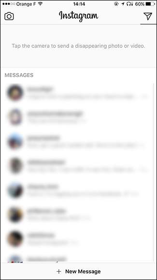 Để gửi một Tin nhắn biến mất kiểu Snapchat , từ trang chính hoặc trang Tin nhắn trực tiếp, hãy nhấn vào biểu tượng máy ảnh ở trên cùng bên trái.