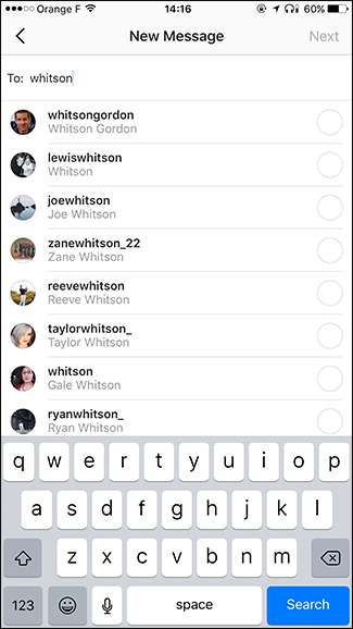Nhấn vào tên của họ. Bạn có thể thêm nhiều người vào tin nhắn bằng cách tìm kiếm lại. Nếu không, hãy nhấn vào Tiếp theo.