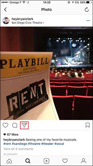 Để chia sẻ bài đăng thông qua Tin nhắn trực tiếp, hãy chuyển đến bài đăng bạn muốn chia sẻ và nhấn vào biểu tượng Tin nhắn trực tiếp.