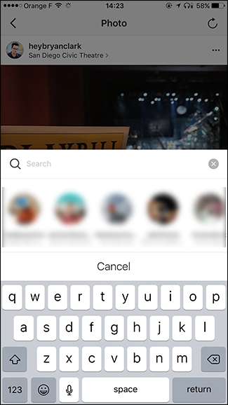 Chọn một trong các liên hệ yêu thích của bạn hoặc nhấn vào biểu tượng Tìm kiếm và nhập tên của liên hệ mà bạn muốn chia sẻ bài đăng.