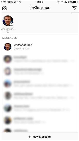Mở Instagram và từ trang chính, chạm vào biểu tượng Tin nhắn trực tiếp ở góc trên cùng bên phải hoặc vuốt sang trái để truy cập trang Tin nhắn.