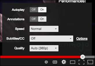Ngoài ra, đôi khi bạn có thể điều chỉnh tốc độ, chất lượng phát lại, cũng như xem bạn có muốn phụ đề hay không (nếu có). Nếu bạn nhấp vào liên kết “Tùy chọn” bên cạnh “Phụ đề”, bạn cũng có thể điều chỉnh hình thức và vị trí của chúng.