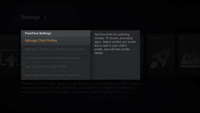 Trong menu phụ này, bạn có thể phê duyệt nội dung đã mua để đưa vào khu vực FreeTime được bảo mật. Nếu bạn đã khóa hoàn toàn thiết bị Fire TV của mình nhưng bạn muốn con mình truy cập một số lượng nhỏ các ứng dụng và tập của chương trình truyền hình yêu thích của chúng, bạn có thể đưa chúng vào đây một cách có chọn lọc.