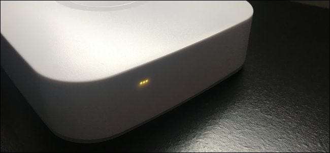 Chèn kẹp giấy hoặc bút vào lỗ lõm, sau đó nhấn và giữ nút màu đỏ trong khoảng 30 giây. Đèn LED ở mặt trước của trung tâm sẽ nhấp nháy màu vàng. Khi nó ngừng nhấp nháy và vẫn có màu vàng đặc, hãy nhả nút đặt lại.