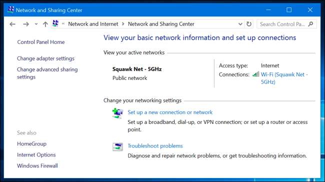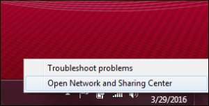Ghi chú : Các bản cập nhật Windows 10 gần đây đã thay đổi điều này. Nhấp vào tùy chọn “Mở Cài đặt Mạng & Internet” xuất hiện trong menu ngữ cảnh. Khi cửa sổ Cài đặt xuất hiện, cuộn xuống và nhấp vào “Trung tâm mạng và chia sẻ”. Bạn cũng có thể đi tới Control Panel> Network and Internet> Network and Sharing Center.