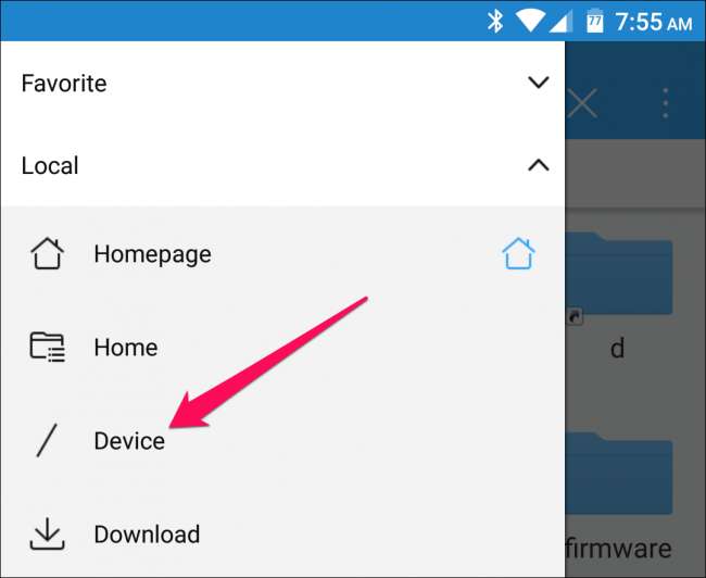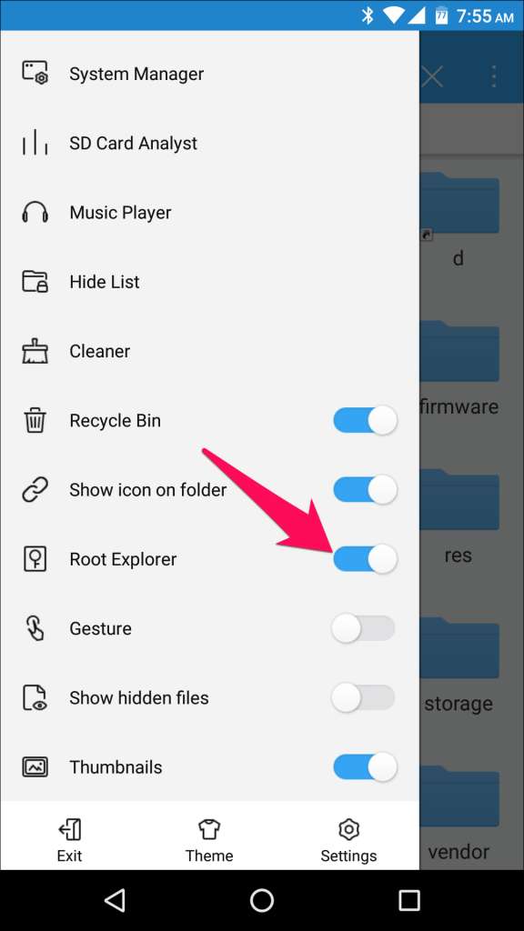 Trước tiên, hãy tải xuống trình khám phá tệp hỗ trợ gốc thay thế, chẳng hạn như ES File Explorer . Khởi chạy ứng dụng và nhấn vào nút menu ở góc trên bên trái. Cuộn xuống và trượt công tắc “Root Explorer” sang “On”.
