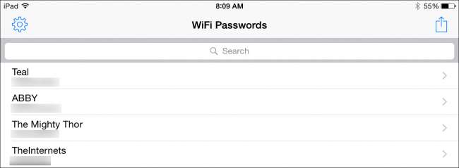 Sau khi cài đặt, hãy mở ứng dụng và bạn sẽ được cung cấp danh sách mọi mạng Wi-Fi mà bạn đã kết nối, cùng với mật khẩu của chúng. Bạn có thể tìm kiếm mạng bạn đang tìm kiếm hoặc cuộn xuống mạng đó.