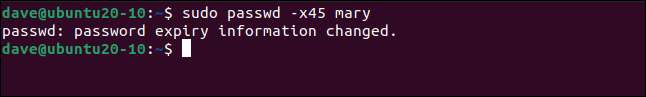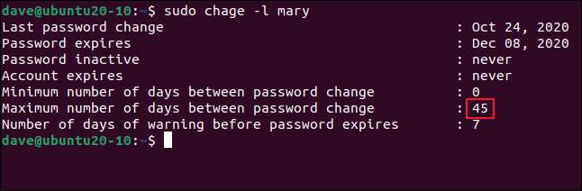 Ngày hết hạn mật khẩu hiện được đặt thành 45 ngày kể từ ngày chúng tôi đặt nó, như chúng tôi được hiển thị, sẽ là ngày 8 tháng 12 năm 2020.