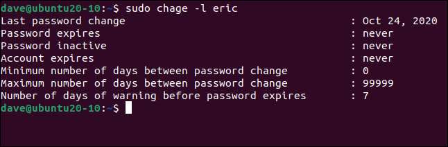 để thay đổi cài đặt liên quan đến lão hóa mật khẩu. Lệnh này có được tên của nó từ "Thay đổi lão hóa." Nó giống như