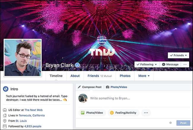 Hồ sơ có dấu tích màu xanh lam là những hồ sơ mà Facebook đã xác minh rằng hồ sơ đó là hồ sơ thực của nhân vật công chúng mà Facebook tuyên bố đại diện. Ví dụ, bạn tôi Bryan Clark là biên tập viên Hoa Kỳ tại The Next Web. Bạn có thể thấy anh ấy có hồ sơ Facebook đã được xác minh để bạn biết rằng nếu bạn theo dõi anh ấy, thì bạn thực sự đang theo dõi anh ấy.