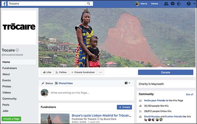 Các trang có dấu tích màu xám đại diện cho các doanh nghiệp và tổ chức mà Facebook đã xác minh là có thật và họ tuyên bố là ai. Ví dụ: Trocaire, một tổ chức từ thiện của Ireland, có một dấu xác minh màu xám.